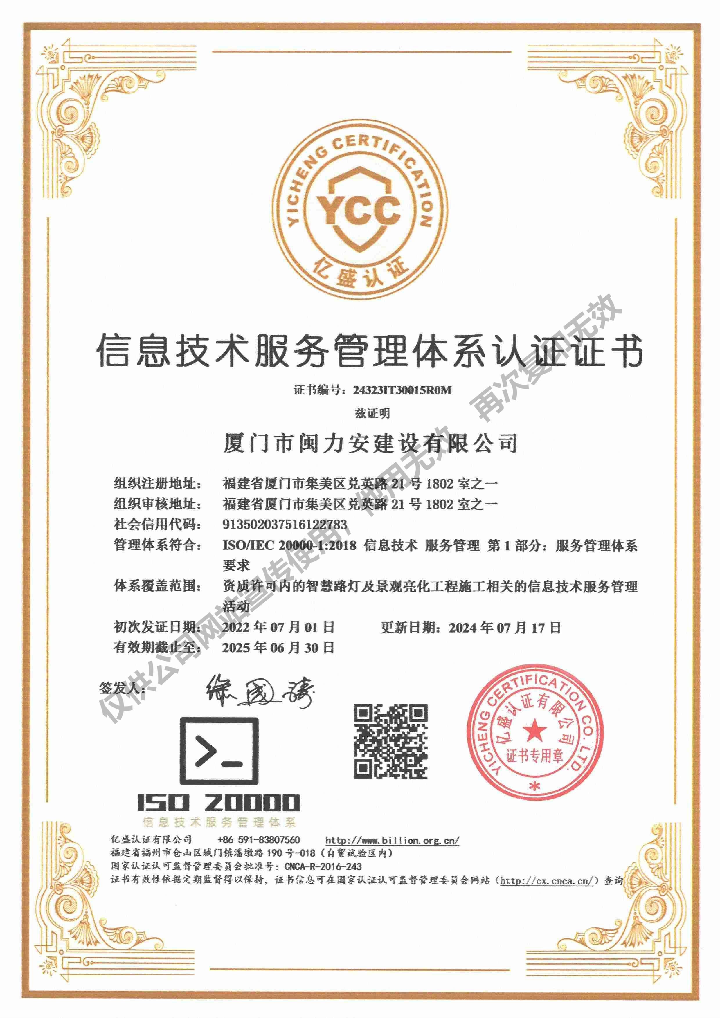 廈門市閩力安建設(shè)有限公司成立于2003年,公司取得市政公用工程施工總承包貳級(jí)、建筑裝修裝飾工程專業(yè)承包壹級(jí)、城市及道路照明工程專業(yè)承包壹級(jí)、電子與智能化工程專業(yè)承包貳級(jí)、消防設(shè)施工程專業(yè)承包貳級(jí)、電力工程施工總承包叁級(jí)、建筑機(jī)電安裝工程專業(yè)承包叁級(jí)、輸變電工程專業(yè)承包叁級(jí)、環(huán)保工程專業(yè)承包叁級(jí)、照明工程設(shè)計(jì)專項(xiàng)甲級(jí)、建筑裝飾工程設(shè)計(jì)乙級(jí)、施工勞務(wù)等資質(zhì)的綜合型企業(yè),公司于2013年通過(guò)了ISO9001質(zhì)量體系認(rèn)證,ISO14001環(huán)境管理體系認(rèn)證,OHSAS18001職業(yè)健康安全管理體系認(rèn)證。